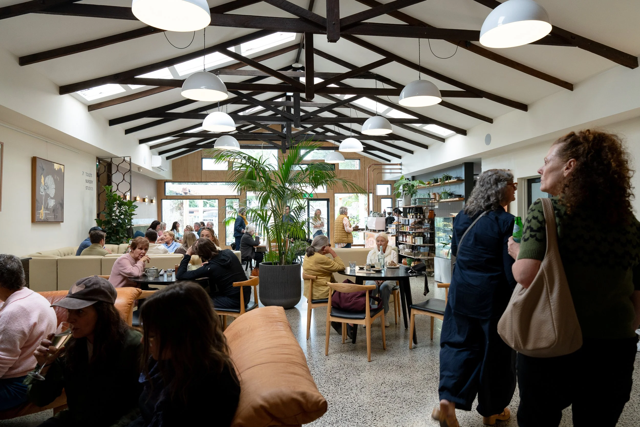 A space filled with natural light, walls adored with art and a contemporary style - you are welcome to sit at a table, on a couch in the library, at communal tables or outside.